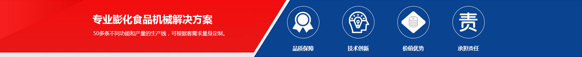 擠壓膨化技術作為一種經濟實用的新型加工方法廣泛應用于食品生產中,并得到了迅速的發展。采用擠壓技術來加工谷物食品,在原來初步分隨和混合后,即可在擠壓機中一次完成混煉、熟化、破碎、殺菌、成型等工藝,制作膨化產品。在經油炸(或不經油炸)、烘干、調味后即可上市銷售。只要簡單地更換模具,便可方便地改進產品形狀…